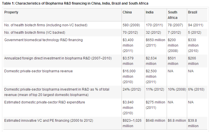 據(jù)媒體報道,由大型跨國公司帶來的直接投資也在加速向新興市場涌入,從行業(yè)協(xié)會的相關數(shù)據(jù)反映的生物醫(yī)藥科技公司成立的數(shù)量和每年數(shù)十億美元的生命科學領域PE來看,新興市場的投資也正在激增。然而,支持生物醫(yī)藥科技公司初期項目和研發(fā)的風險投資卻不沒有多少對外公開,因為現(xiàn)有衡量投資創(chuàng)新初期的標桿不僅僅包括新產品開發(fā)公司,而且還包括那些制造工業(yè)或者那些缺乏研發(fā)能力的服務型公司。