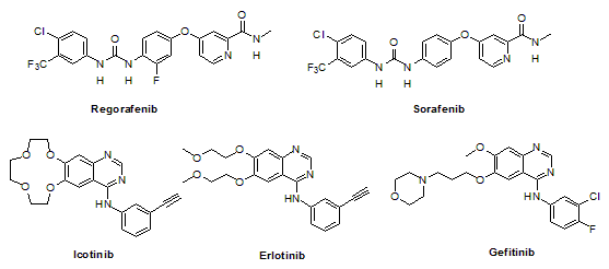 附Regorafenib、Sorafenib、icotinib、erlotinib和gefitinib的化學(xué)結(jié)構(gòu):
