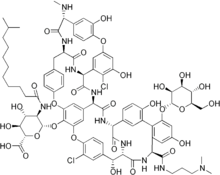 Durata制藥公司的這個(gè)新藥申請(qǐng)于2013年9月26日提交,主要臨床依據(jù)包括 DISCOVER 1和DISCOVER 2兩項(xiàng)積極的III期臨床結(jié)果以及先前的一項(xiàng)代號(hào)為VER001-9的III期臨床研究。達(dá)巴萬(wàn)星是一種新型二代糖肽類抗生素,其化學(xué)結(jié)構(gòu)如下。達(dá)巴萬(wàn)星的作用機(jī)制與Vancomycin和Teicoplanin相同,通過(guò)抑制革蘭氏陽(yáng)性菌細(xì)胞壁的生物合成產(chǎn)生效果。體外實(shí)驗(yàn)表明,達(dá)巴萬(wàn)星能有效抑制包括MRSA、MRSE等革蘭氏陽(yáng)性病原。
