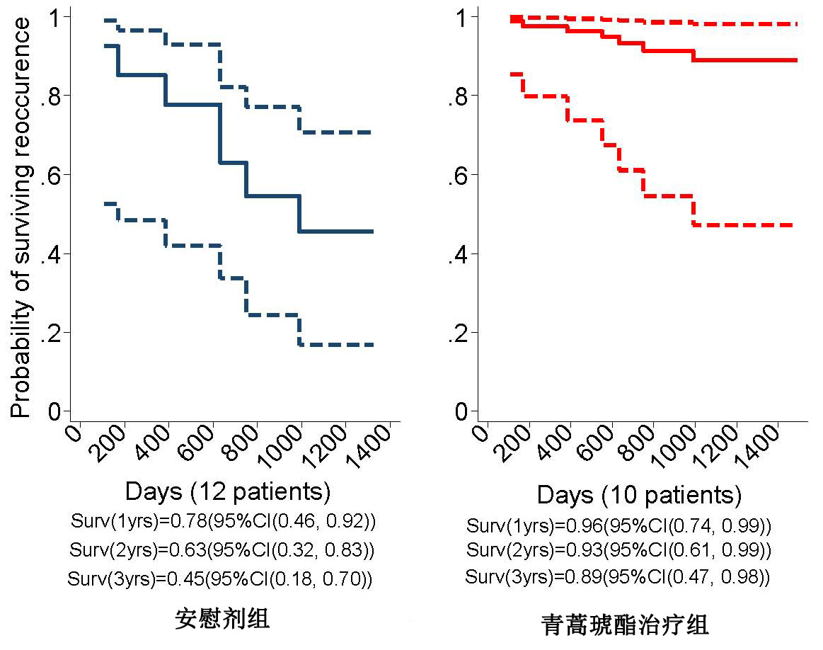 【新聞事件】以倫敦大學(xué)為首的英國(guó)、德國(guó)和比利時(shí)聯(lián)合課題組最近發(fā)現(xiàn),在一個(gè)只有23例結(jié)直腸癌患者參與的小型臨床實(shí)驗(yàn)中,如果患者在手術(shù)治療前兩周,每天服用200毫克青蒿琥酯片(2x100毫克片劑),能有效地降低患者復(fù)發(fā)的風(fēng)險(xiǎn)。手術(shù)治療后經(jīng)過中位數(shù)為44個(gè)月的隨訪,青蒿琥酯治療組的10名患者只有一例復(fù)發(fā),而安慰劑組的11個(gè)患者有6例復(fù)發(fā)。青蒿琥酯治療組的2年生存率為91%,高于安慰劑組的57%。這樣為結(jié)直腸癌患者提供了一種廉價(jià)且有效的輔助治療方案。