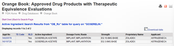 3.6mg和10.8mg兩個(gè)規(guī)格的諾雷得,分別于1989年12月和1996年1月被FDA批準(zhǔn)上市,上市20多年也是獨(dú)家品種。其主要化合物專利均已過保護(hù)期,F(xiàn)DA網(wǎng)站橙皮書顯示,剩余的專利是給藥裝置,即植入用預(yù)充注射器包裝相關(guān)專利還在保護(hù)期內(nèi)。