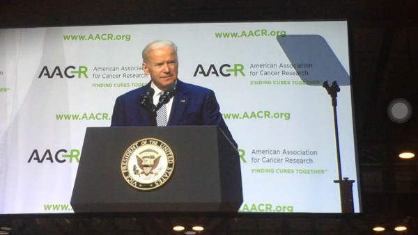 今天的主要節(jié)目是科學以外的政策講演,美國副總統(tǒng)拜登花了半個小時闡述所謂的腫瘤登月計劃。該計劃的長期目標是治愈腫瘤(cure cancer as we know it),并要把10年的工作5年完成。拜登副總統(tǒng)提出幾條具體建議,除了以前廣為人知的大數(shù)據(jù)、鼓勵數(shù)據(jù)分享、降低合作壁壘外,今天還提出政府科研基金偏向更前沿研究、提高基金審批效率、免費分享科研成果、根據(jù)治療效果分配研發(fā)經(jīng)費等。雖然拜登說了不少官話,如在座科學家是最重要資源,但他還是讓所有人多等了十幾分鐘(還不算安檢的半小時)。但是也真誠地說他不懂科學,科學家要告訴他哪些問題可能通過政策即將解決。